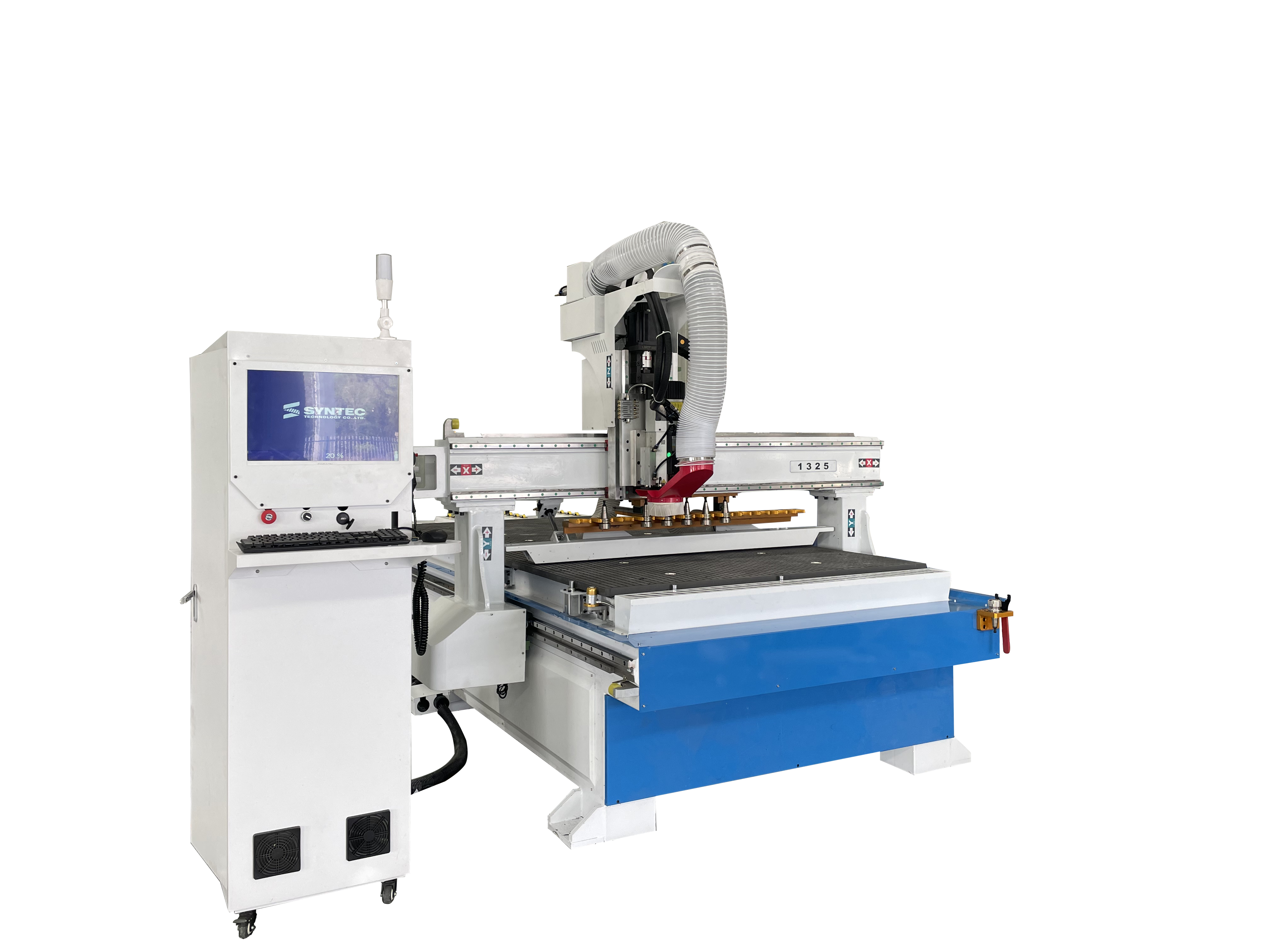 電腦雕刻機由計算機,雕刻機控制器,雕刻機主機三部分組成。工作原理:是通過計算機內配置的專用雕刻軟件進行設計和排版,并由計算機把設計與排版的信息自動傳送雕刻機控制器中,再由控制器把這些信息轉化成能驅動步進電機或伺服電機的帶有功率的信號(脈沖串),控制雕刻機主機生成X,Y,Z三軸的雕刻走刀路基徑。同時,雕刻機上的高速旋轉雕刻頭,通過按加工材質配置的刀具,對固定于主機工作臺上的加工材料進行切削,即可雕刻出在計算機中設計的各種平面或立體的浮雕圖形及文字,實現雕刻自動化作業。